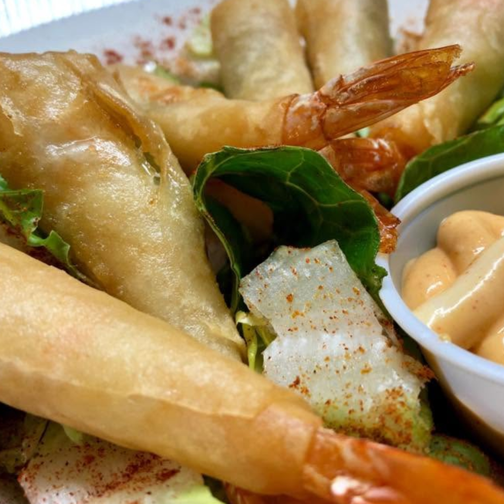Crispy wonton, shrimp, touch of ginger & cilantro - served w/ a homemade Sriracha aioli